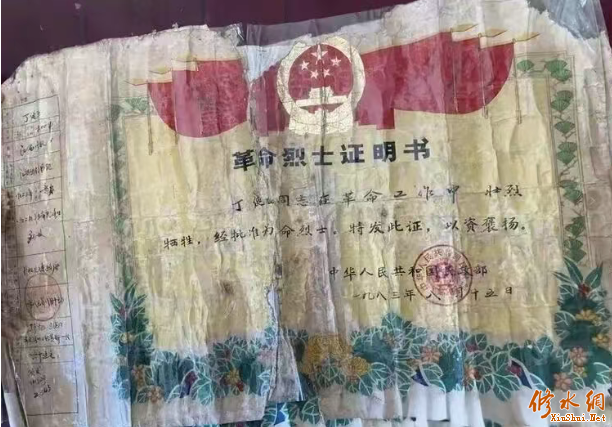 丁健亚革命烈士证明书