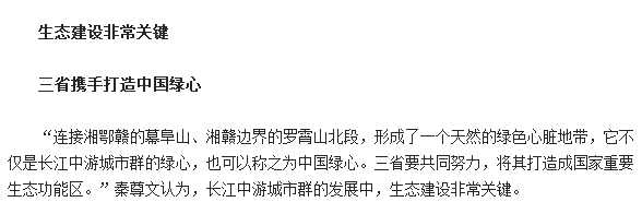 权威解读:修水(幕阜山)在长江中游城市群的“绿心”地位 4月16日上午国家改革委召开新闻发布会,解读《长江中游城市群发展规划》。国家发展改革委员会地区经济司副司长于合军表示,长江中游城市群还有一个非常明显的特点,专门规划建设了一个“绿心”,这就是跨区域规划所体现的一种优势。 内容来自xiushui.Net 会上,强卫强调,要努力把赣湘鄂交界的幕阜山打造成为“中部绿心”,共同推进生态文明先行示范区建设 内容来自xiushui.Net |