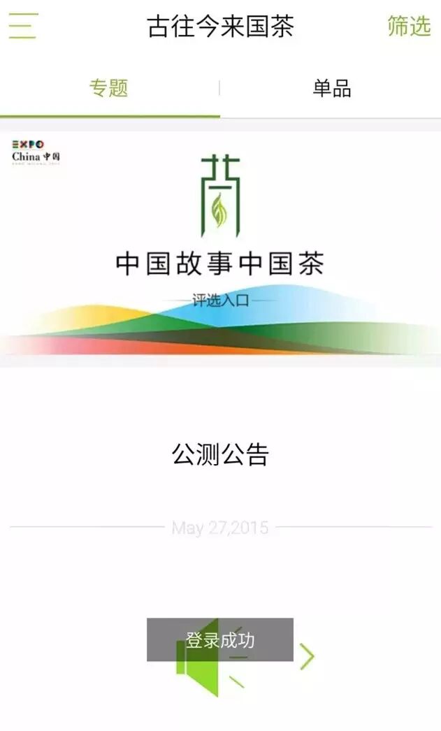 第一步:登陆成功后点击“中国故事中国茶”评选入口进入投票界面。