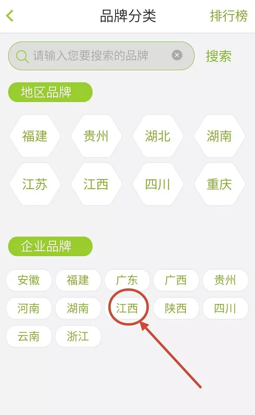 第二步:选择“企业品牌”-“江西”; 选择“地区品牌”-“江西”。