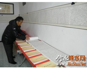 11月11日,义宁镇西茗村老党员陈光友展示抄好的长卷。有着22年党龄的陈光友从企业退休后开始抄写伟人著作。自今年3月始,他手抄...