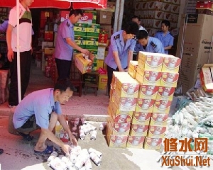 近日,县工商局组织工作人员深入白岭、古市、全丰等乡镇部分超市开展集中检查,依法查处各类不合格商品。图为工作人员在白岭镇某...