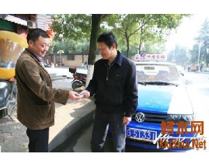 11月14日,赣G5T331出租车司机邓紧根在车上捡到乘客遗落的一部手机,马上联系上失主将手机交还。 (记者 王江明 摄)...