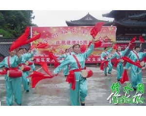 6月20日,宁州镇南崖社区举办庆祝建党90周年暨社区党员志愿者赈灾义演。 (实习记者 卢 和 摄)...