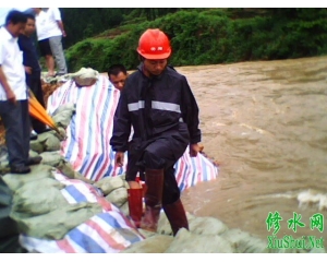 港口镇村干部组织群众筑堰排涝。 (港 文 摄)...