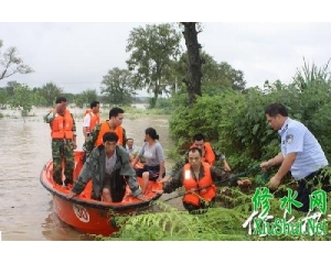 县公安局民警在渣津镇司前村营救被困群众200名。(张国平 记者 朱修林 摄)...