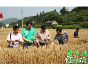 5月20日,县农业局农技人员在马坳镇白土村小麦高产示范基地察看麦子长势。去年冬种中,我县大面积试种优质高产小麦,面积达2.8万...