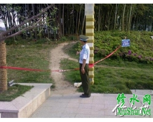 马家洲公园绿地多处严重受损,即使用红绳围起禁止行人通过,也无济于事。 (记者 黄新建5月3日 摄于马家洲公园)...