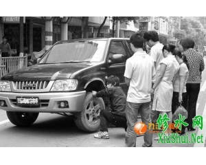 司机将脱出的轮胎重新装上。(记者 周武现 摄) 真险,真吓人!轮胎像飞碟一样飞出去撞坏了煤炉,与行人擦肩,刚才发生的一幕就...