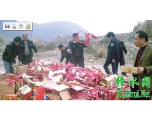 2月28日,修水县将去年以来查获的73384封大地红爆竹、2万余个各类烟花等“三无”烟花爆竹产品集中销毁。(朱修林 摄)...