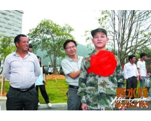 9月12日,白岭镇沙坪村青年、中国人民解放军理工学院硕士研究生、沈阳军区陆军某部新兵杨远高兴地戴上了大红花,准备光荣入伍。...