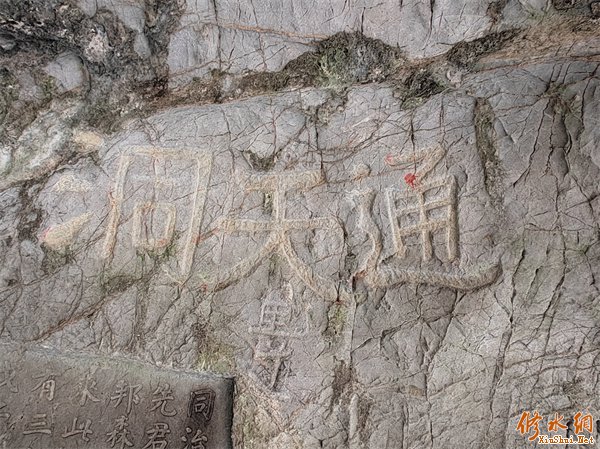 “元周伯温理公岩摩崖,经明郎仁宝剔除苔藓,显表留世人,又二百余年,复无知者。咸丰癸丑六月,偕胡鼻山访之不获。越七日重来,乃得遂。属鼻山题识岩下,俾后来者易采访。钱唐钱松叔盖记。” ![]()