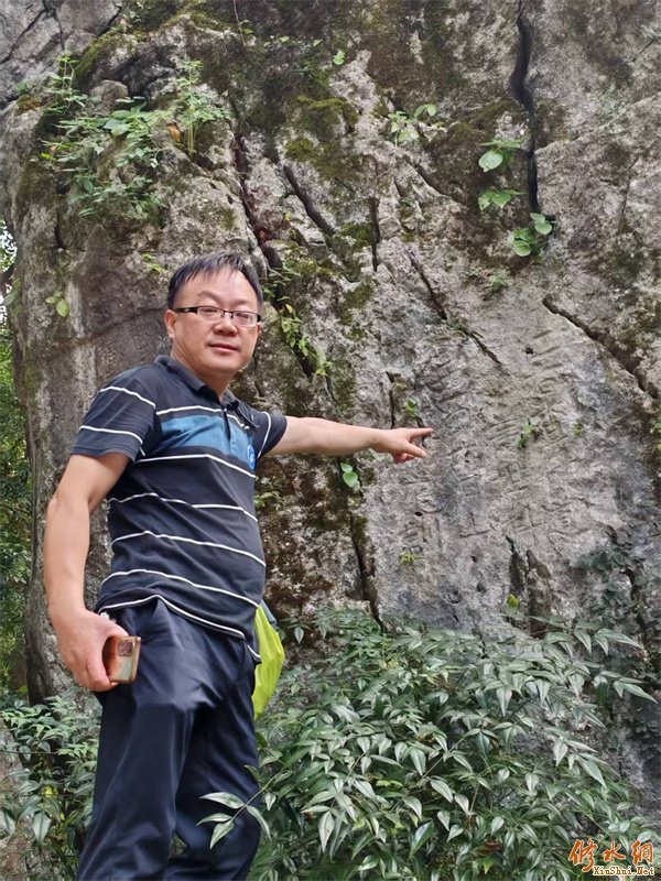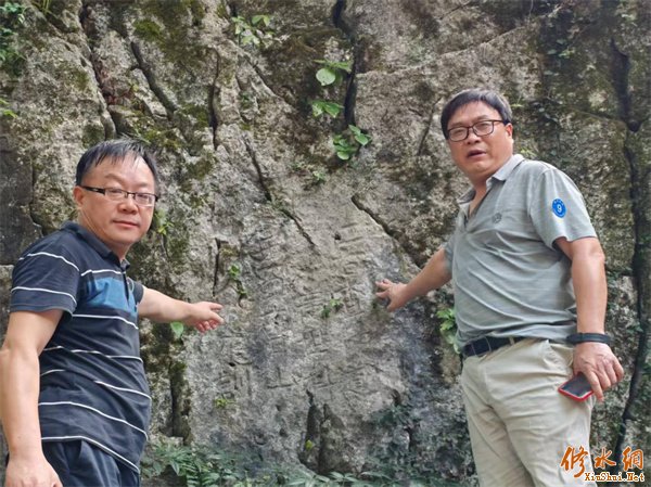 工作人员将我们带到一处狭窄石缝前,石缝内藏着两块石刻,我们钻进去,凑上前逐一辨认,透过模糊的字迹,却发现并非查仲道所刻,而是清代胡震、钱松寻碑题识石刻,真巧他们曾经也是来寻碑的,咸丰三年(1853 年)寻访元代周伯琦所书《理公岩记》摩崖石刻,首次寻访未果,七日后再访才得见,遂刻此石记录经过。方才的喜悦瞬间消散,寻思查仲道的题刻恐难以找到,只剩下满心的失落。带着遗憾走出石缝,准备返回青林洞时,身旁的杨姝玲突然停下脚步,指着不远处一块大石头喊道:“就是那块!” 我心中先是一疑,不太可能吧?但还是顺着她指的方向爬了上去,细细查看石面。 ![]() ![]()
