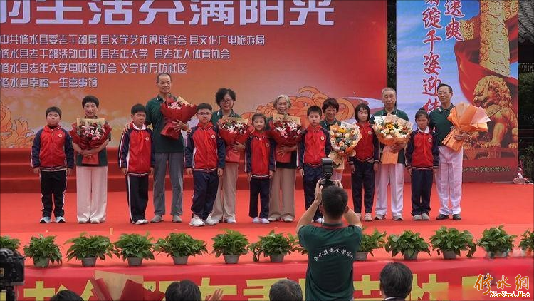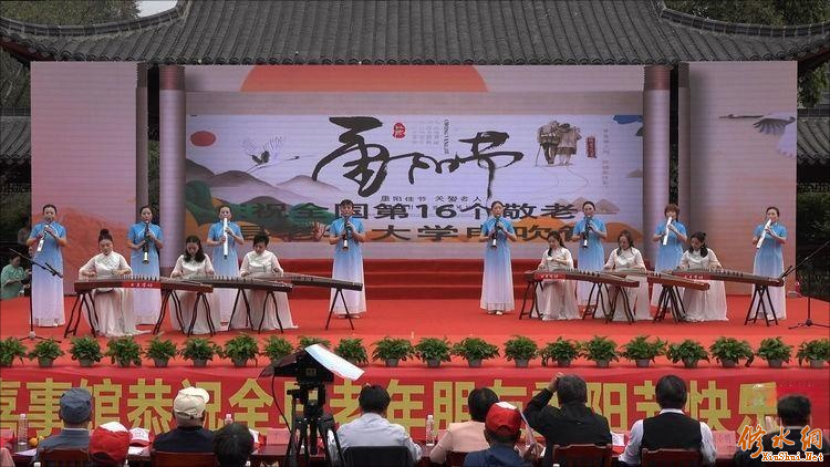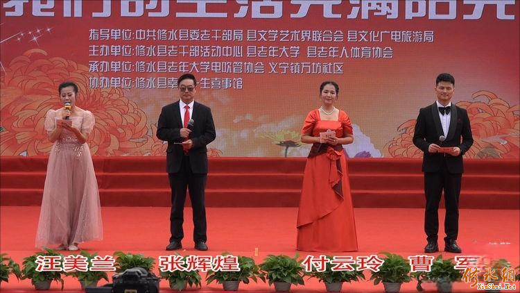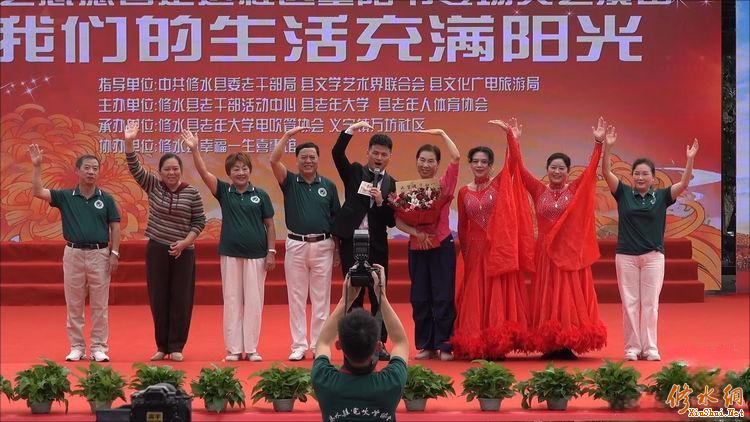今天的演出由中共修水县委,中共修水县委老干部局,县文学艺术界联合会,县文化广电旅游局指导。县老干部活动中心、县老年大学、县老年人体育协会主办,县老年大学电吹管协会、义宁镇万坊社区承办,幸福一生喜事馆协办。