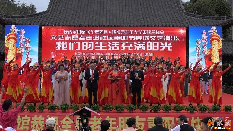 在这个美好时刻,修水县老年大学电吹管协会文艺志愿者携手县老年体协体育舞蹈专项协会、广场舞专项协会、县夕阳红艺术团以及义宁小学走进万坊社区,隆重举办庆祝全国第16个敬老月专场文艺演出,为老年朋友送上节日的祝福,让老年朋友在欢乐祥和的喜庆氛围中度过属于自己的重阳佳节。