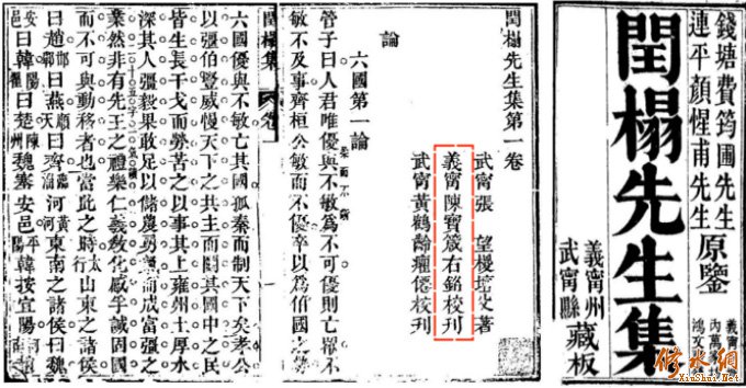 同治三年(1864),陈寅恪的祖父陈宝箴在江西修水义宁州城内万家坊鸿文斋为张望重刊《闰榻先生集》三十卷,江西巡抚沈葆桢撰《重刻闰榻集叙》。